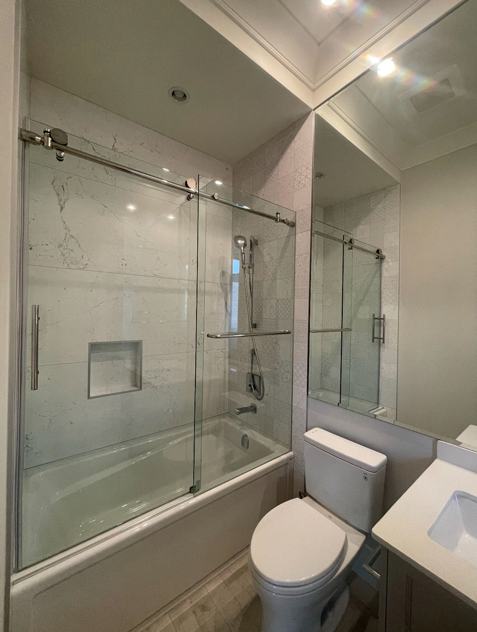 Sleek Simplicity: Enhance your bathroom with sliding shower door systems. Optimal for compact spaces, providing effortless functionality and a contemporary aesthetic. Ideal for busy households seeking convenience with a splash of sophistication